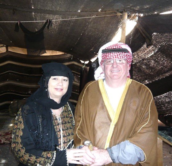 Photo 3 is a picture of Desley and I in typical in a Bedouin clothes in their typical Bedouin tent