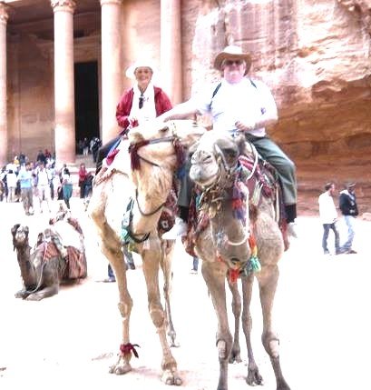Photo 4 is a picture of Desley and I visiting the ancient of Petra and travelling through the Petra